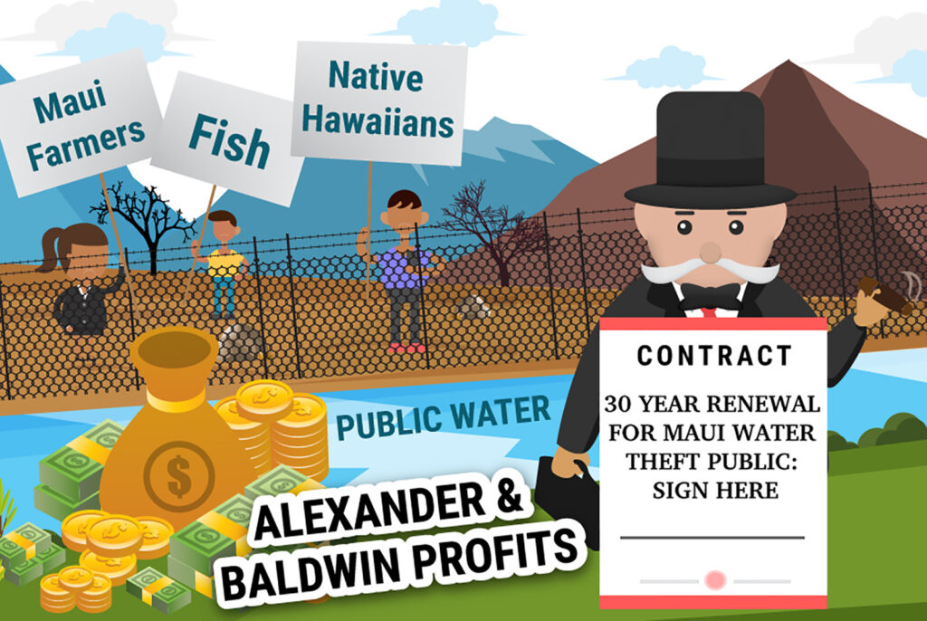 Litigation challenging A&B’s massive water diversions began more than 20 years ago, resulting in a series of state court decisions that concluded, in a ruling in January 2016, that A&B’s water leases were indeed illegal. Instead of complying with the court, A&B, which is by far the largest donor to state politicians in Hawaii, went to the state legislature and in 2016 convinced them to pass a special law making their illegal activities legal for the next three years.